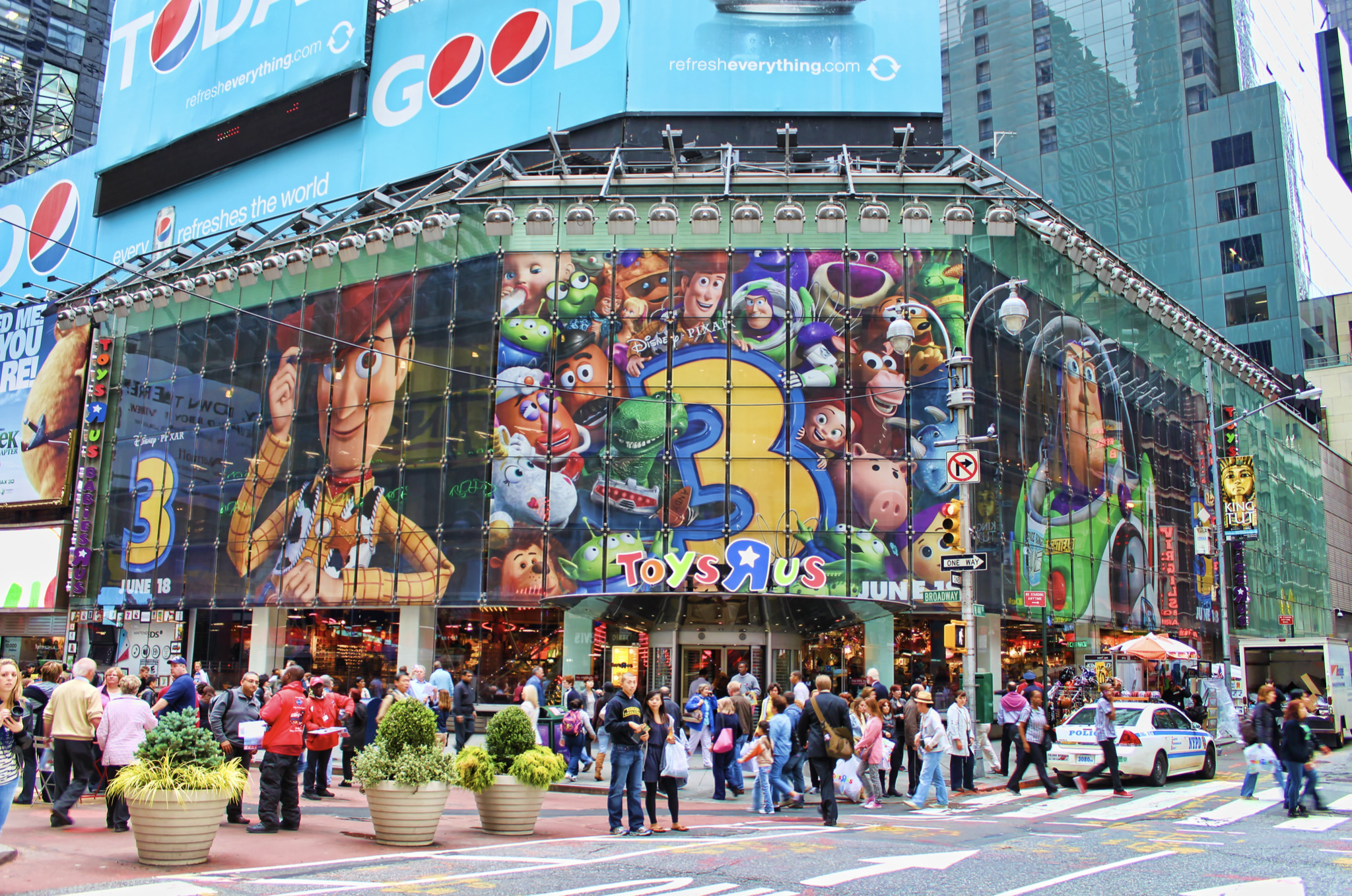 The Toys “R” Us flagship store opened in 2001. But as the years passed and Broadway became a large pedestrian mall, Manhattan rents started to skyrocket. By 2015 Toys “R” Us could no longer afford the rent and closed the store in December, 2015. Today a Gap / Old Navy rents the building. And other than its location, nothing remains of the building’s original exterior or interior to make visitors to Times Square even suspect its often troubled and glamorous history.