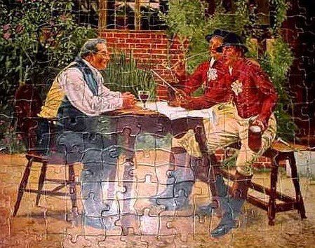 Early jigsaw puzzles did not have true interlocking pieces and sometimes, no picture to guide you! They covered a variety of subjects including storybook characters, historical scenes, fantasy bucolic visions of homes and gardens .