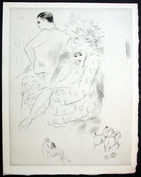 “Dancing” encompassed a witty look at the world of brothels, nightclubs, and discretely unfaithful lovers. These albums cemented his fame.  At this time, Vertès also contributed illustrations to Cherri Colette. (Photos from Lockportstreetgallery.com)