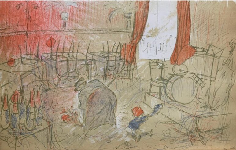 Like Henri de Toulouse-Lautrec and Jean-Louis Forain, Vertès established himself as a prominent 20th century figure of the Parisian art scene. Undeniably his fascination with the vibrancy of 1920s night-life inspired him.  And he lithographs and drawings focused on  street scenes, intimate portraits of women, as well as images of circus and cabaret acts. And, selling illustrations to the Gazette Du Bon Ton and to Rire, a satirical magazine.