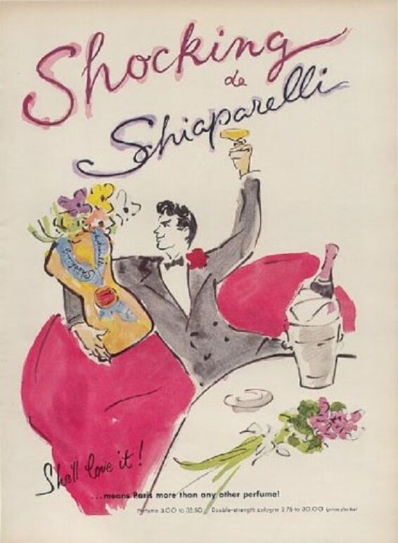 He collaborated with fashion designer Elsa Schiaparelli to create her “Shocking de Schiaparelli” perfume campaign. (Photos from fragranceads.com)