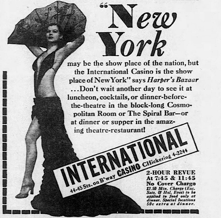 International Casino advertisement, New York Daily News, February, 8, 1938, Pg, 36.