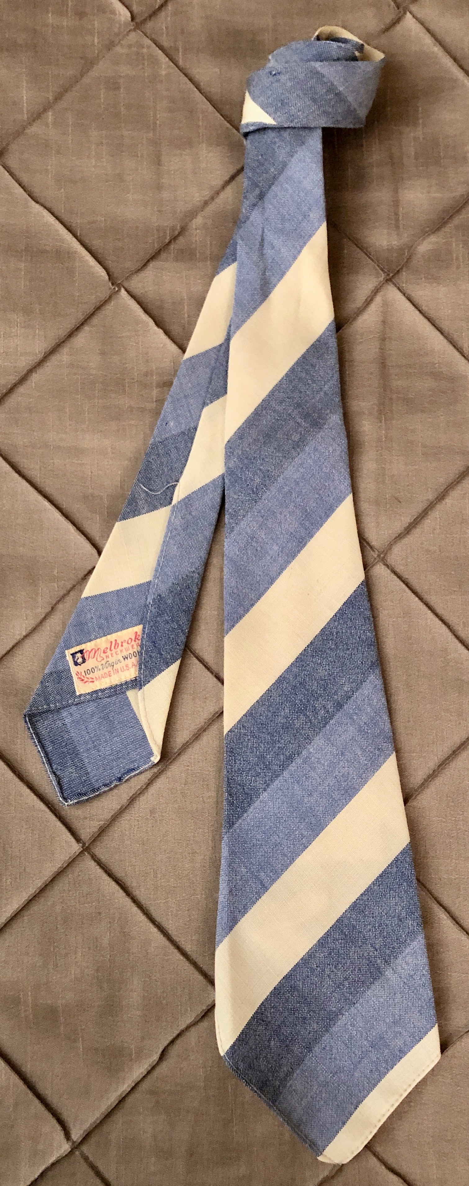 A vintage necktie in excellent condition should last a good number of years. So before buying one, look it over carefully. Any wear and tear (shredding silk, rips, stains, etc.) will only get worse fast once you start to wear it. Rayon and silk neckties tend to wear out faster than wool or knit ties. Wool ties can suffer from moth damage. If the tie is inexpensive enough and the damage is in not too visible spot, buy it and enjoy it. But if you are going to spend over $20.00, the necktie should be in excellent condition.