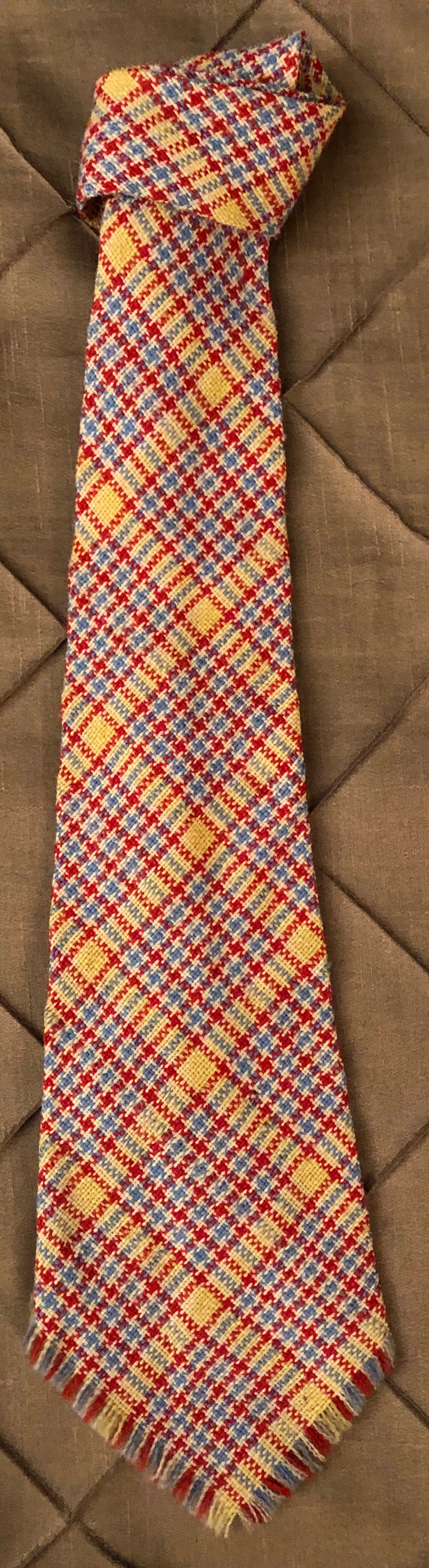 An unlabeled wool, plaid necktie from the late 1920s.