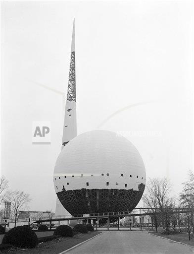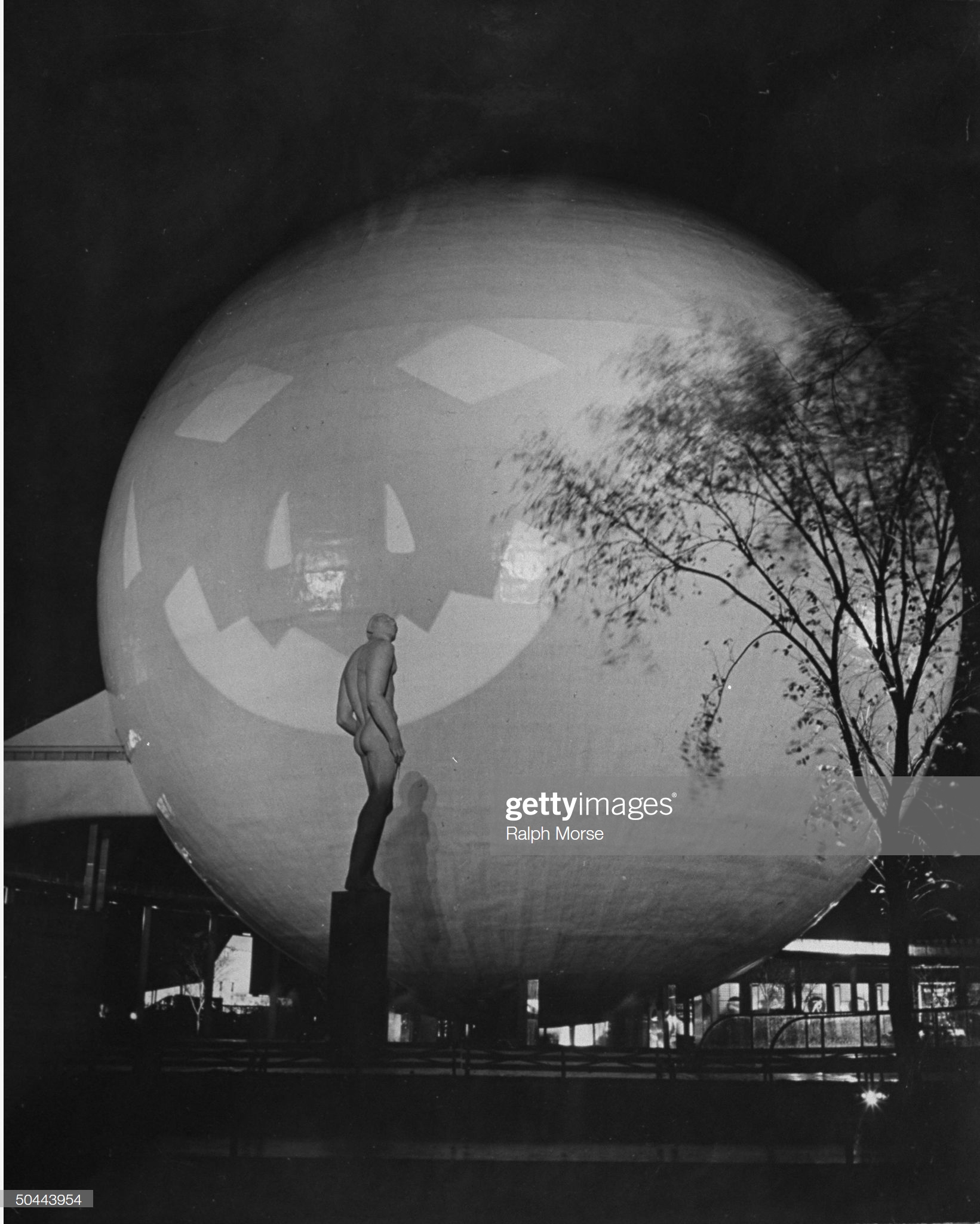 A large sphere with a pumpkin face being displayed at the New York World’s Fair. (Photo by Ralph Morse/Pix Inc./The LIFE Images Collection/Getty Images)