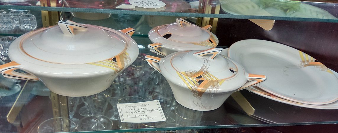 Back on the road, I saw a sign for Hickorycreek Antiques, in Ashland Va. Located in a strip mall, I almost went driving- for- deco right by it.