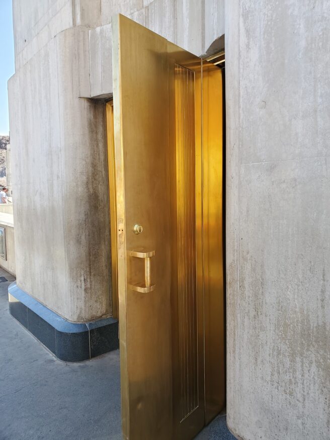 Gordon B. Kaufmann redesigned the external spaces. Kaufmann was a fan of the new streamline look. Elegant turrets rise seamlessly from the dam. Art Deco clocks show the time of both Nevada and Arizona. As Arizona does not observe day-light savings, one clock only has the correct time 6 months out of the year!