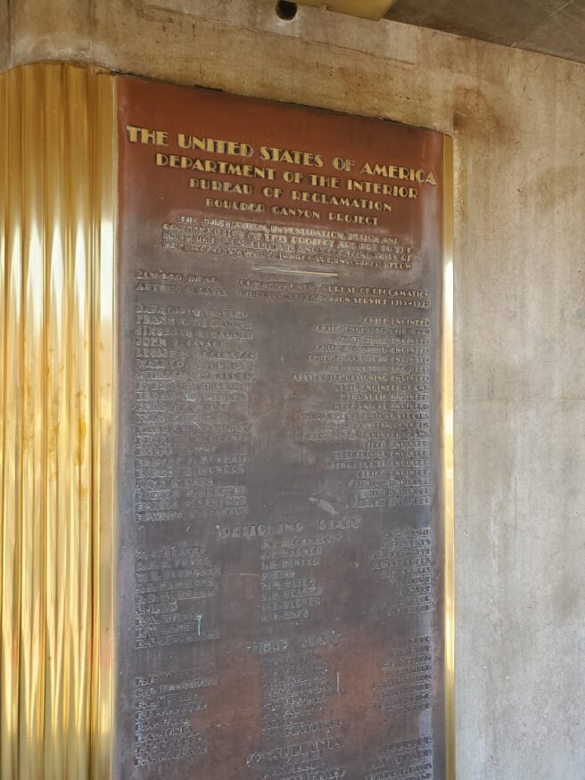 - Bronze panels commemorate the company and men who worked on the dam (photo by the author)