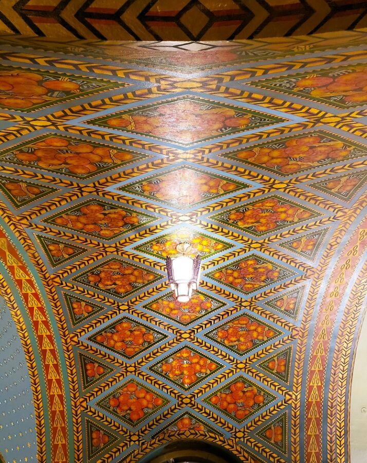 A striking, and recently renovated, hand-painted ceiling. Photo by the authors.