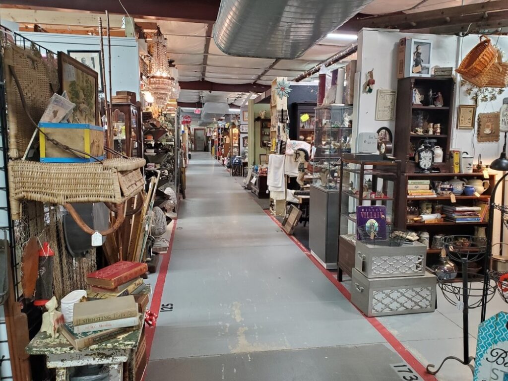 Looking down an aisle at the AAA I-76 Antique Mall.