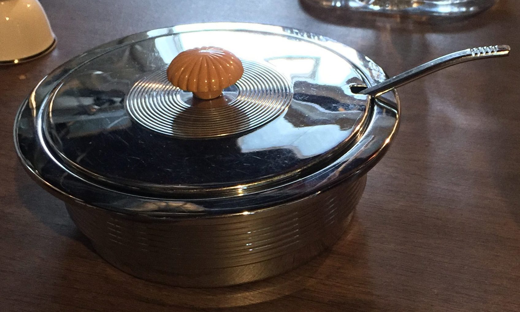 A Russel Wright American Modern vegetable bowl that Chris picked up at the Pottery City Galleries, in East Liverpool, Ohio.