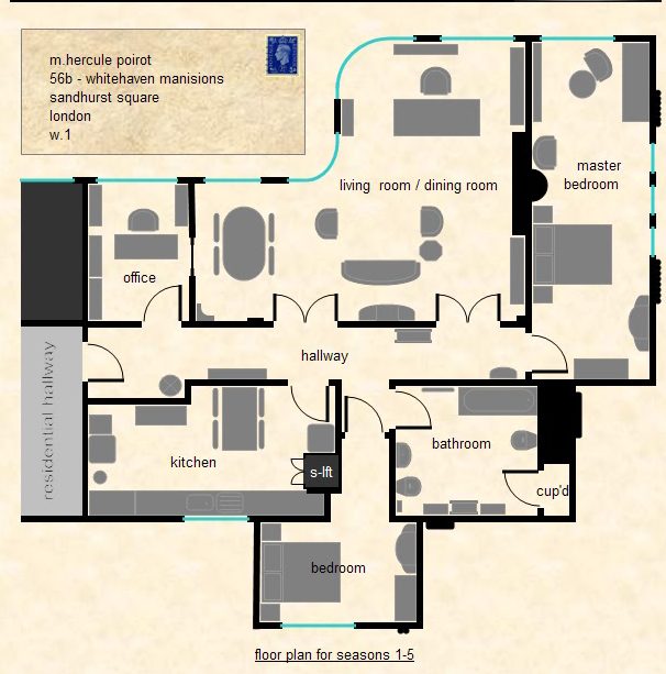 So, what more can I say? Consequently, fantasy is so much more than reality. Hercules Poirot’s beautiful flat would occupy the square footage of at least 3 actual units. Also, it would encroach on the structure next door due to the unusual slope of the northern wall of the real building.