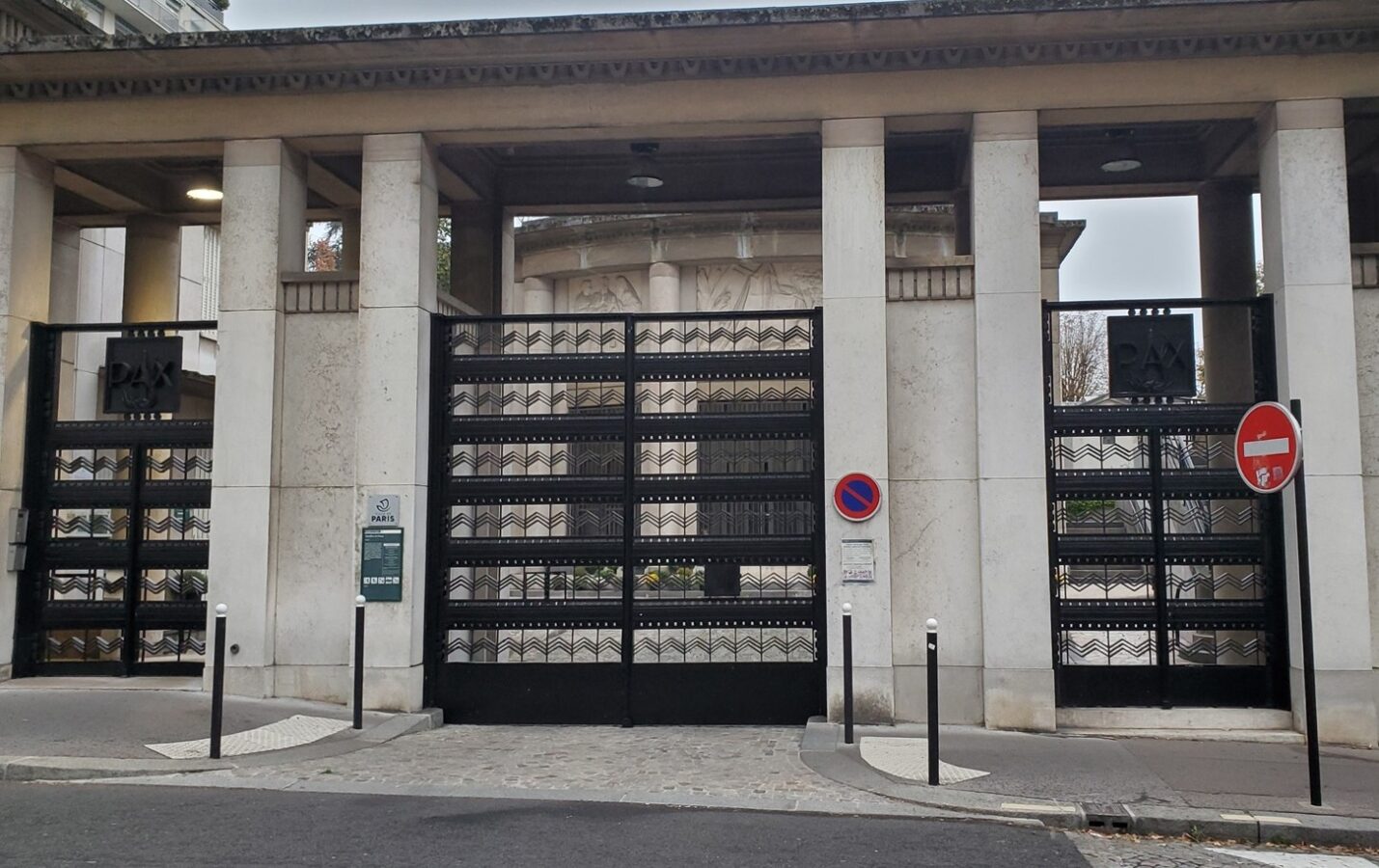 Barely a block away we passed Passy Cemetery, unfortunately closed that evening. The cemetery dates back to 1820, but the Art Deco main entrance and reception pavilion, designed by René Berger, were a 1937 addition.