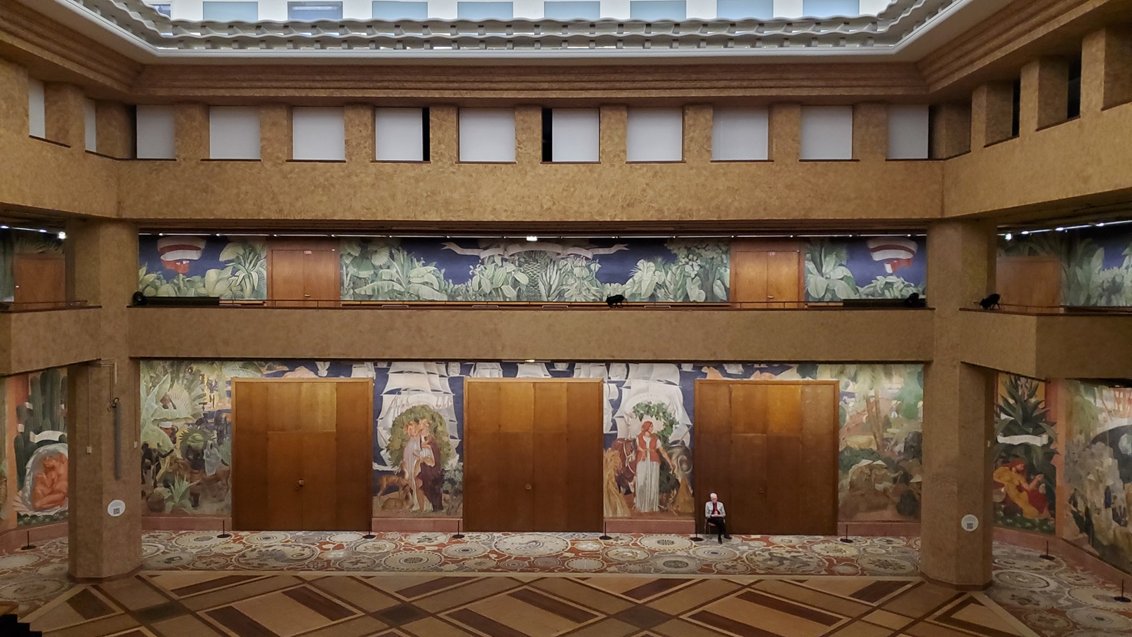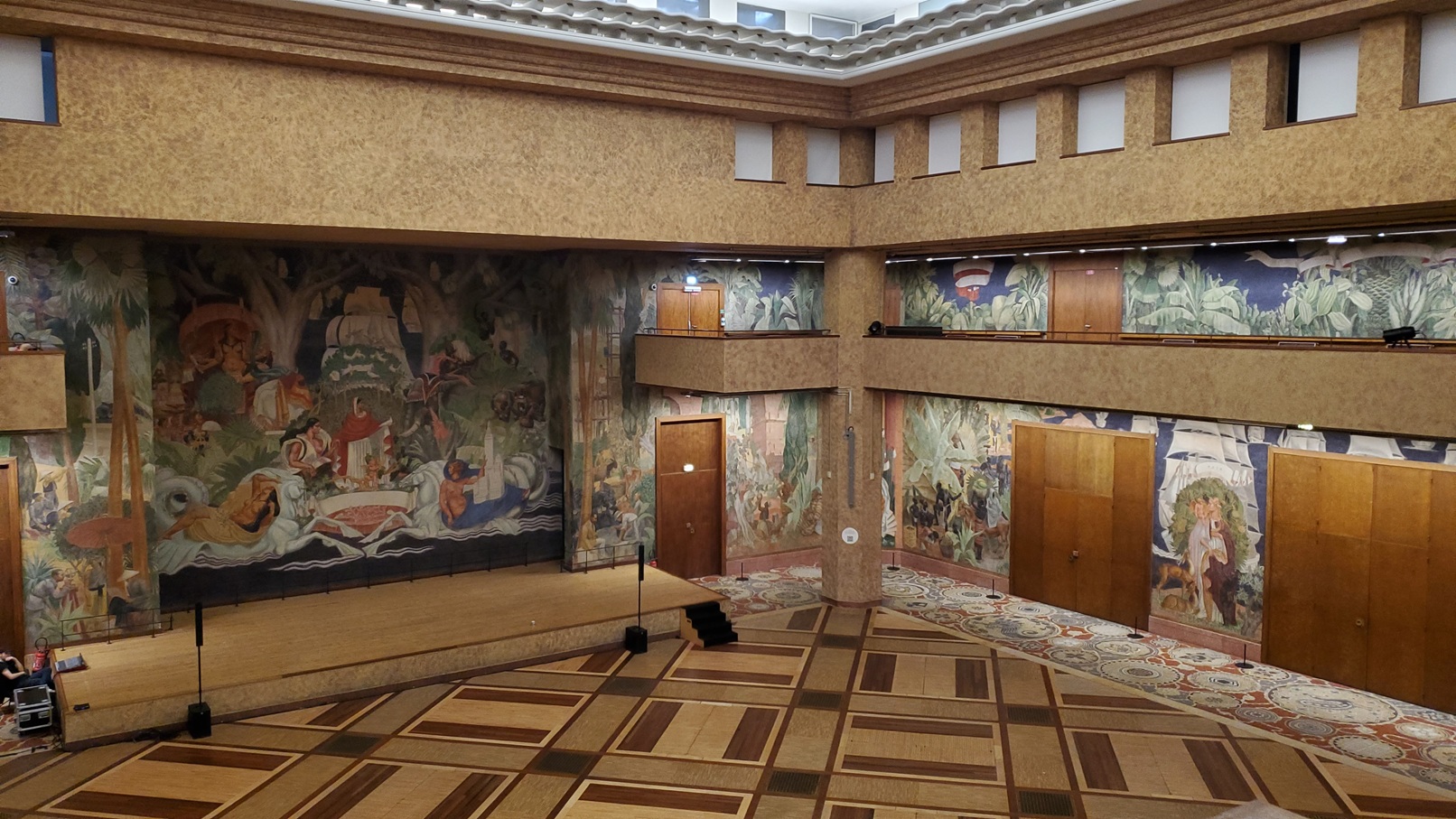 “Indochinese Art” inspired the floors in the Festival Hall. The designs in the Hall of Honour are inspired by “primitive arts of Central Africa”.