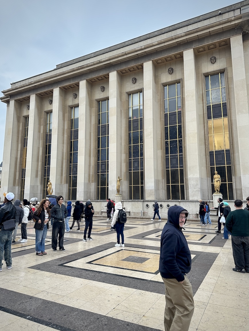 - Chris on the Trocadéro Esplanade on our way to the auditorium.
