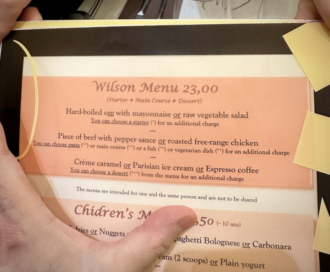 - A close look at Le Wilson’s menu showing the Wilson Menu.