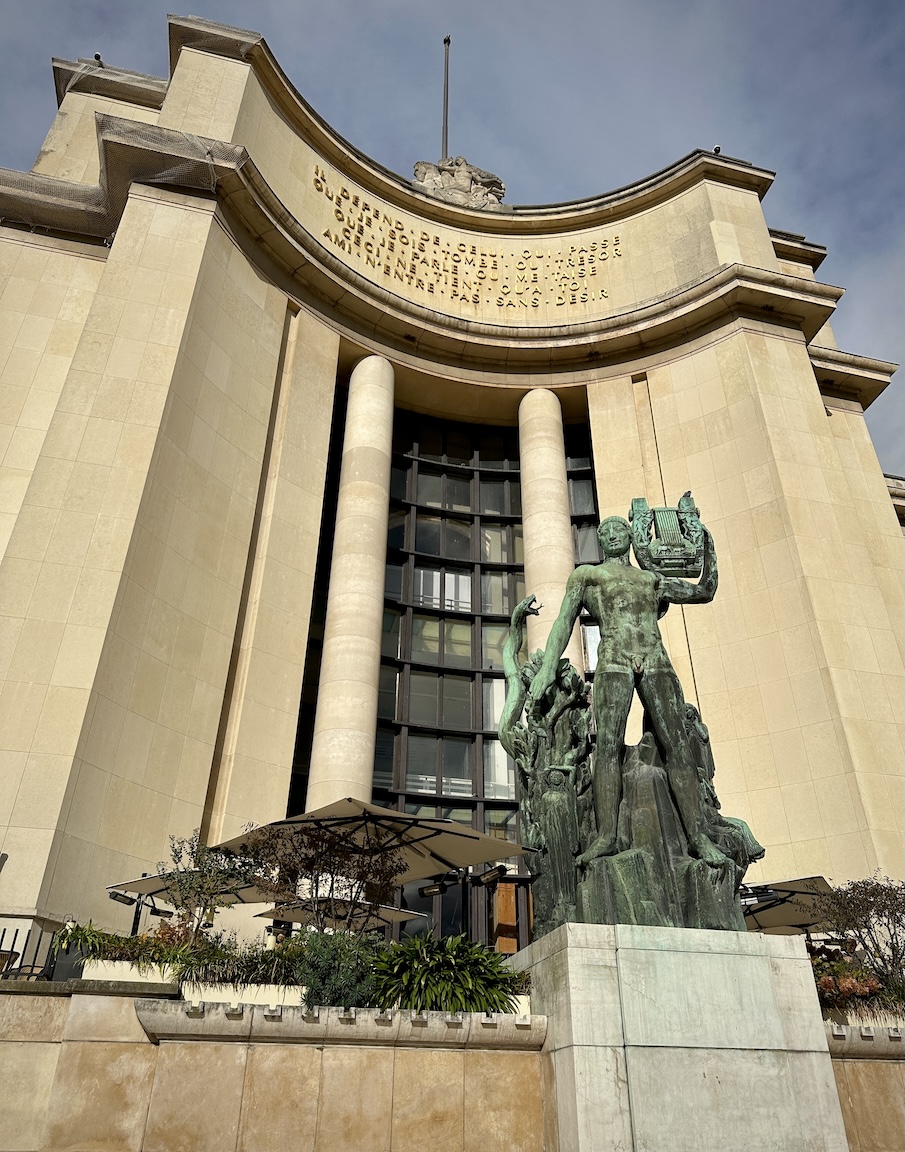 Almost across the street from the cemetery is the Palais de Chaillot. Originally known as the Palais du Trocadéro and built for the 1878 World’s Fair. The Trocadero was partially demolished In preparation for the 1937 World’s Fair and the two remaining wings completely rebuilt.
