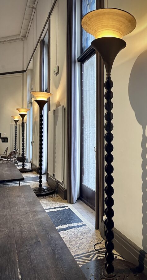 As the bus stopped for a red light, a very tall Art Deco lamp post caught my eye. Because of the rain speckled window I could not get a great photo of it. The light was designed by a master French metal worker, Raymond Subes (1891 – 1970). These lights have a fascinating history that you can read about by clicking here. This would not be the last time that day we would run into Raymond Subes’ work.
