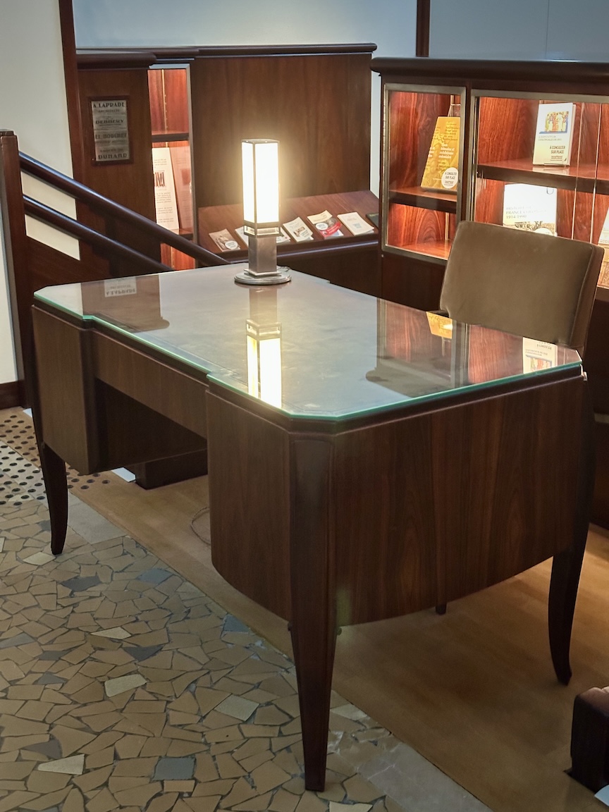The high quality library furniture was removed to other offices or put into storage over the years. Made under the direction of Léon-Émile Bouchet (1880 – 1940) of African walnut and Madagascar rosewood, these pieces underwent restoration in 2022 and placed back into their original location.