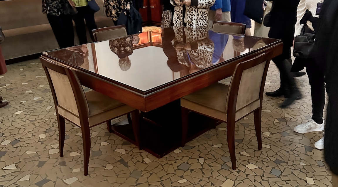 This space was dismantled. But through generous donations, recently restored. Its’ name derives from the many lacquer panels by Jean Dunand (1877 – 1942). Dunand is arguably best known for his decorative panels for the ocean liner S.S. Normandie. And Dunand pieces can be found in museums worldwide.